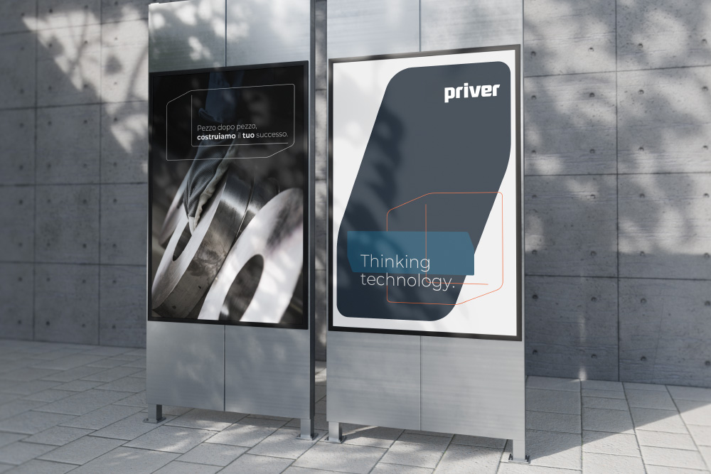 Priver è un’azienda con una forte identità industriale, radicata in un settore tecnico e competitivo, dove chiarezza, affidabilità e riconoscibilità non sono accessori, ma elementi strategici. In questo contesto, il lavoro sulla corporate identity non poteva limitarsi a un intervento estetico, ma doveva tradurre visivamente il posizionamento dell’azienda.